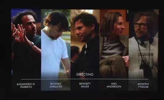 奥斯卡提名:理查德·林克莱特-少年时代,亚利桑德罗·冈萨雷斯·伊纳里图-鸟人,贝内特·米勒-狐狸猎手,韦斯·安德森-布达佩斯大饭店,莫腾·泰顿-模仿游戏