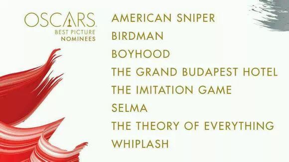 奥斯卡提名:美国狙击手、鸟人、少年时代、模仿游戏、布达佩斯大饭店、塞尔玛、万物理论、爆裂鼓手